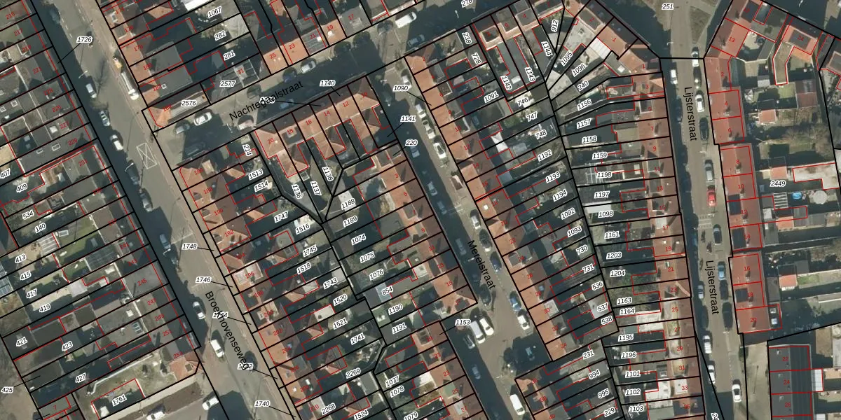 Gebruik de zoekbalk of klik op een perceel voor informatie over de adressen binnen dit perceel.