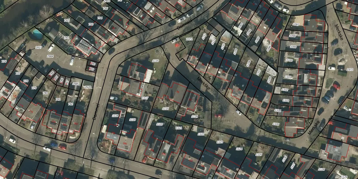 Het perceel waarop Merkske 26 staat heeft een oppervlakte van 377 m². Dit is een groot perceel. De perceeloppervlakte wordt geregistreerd door het Kadaster. Gedetailleerde informatie over de maten van dit perceel kunt u vinden in het rapport Kadastrale kaart met maatvoering van Merkske 26.