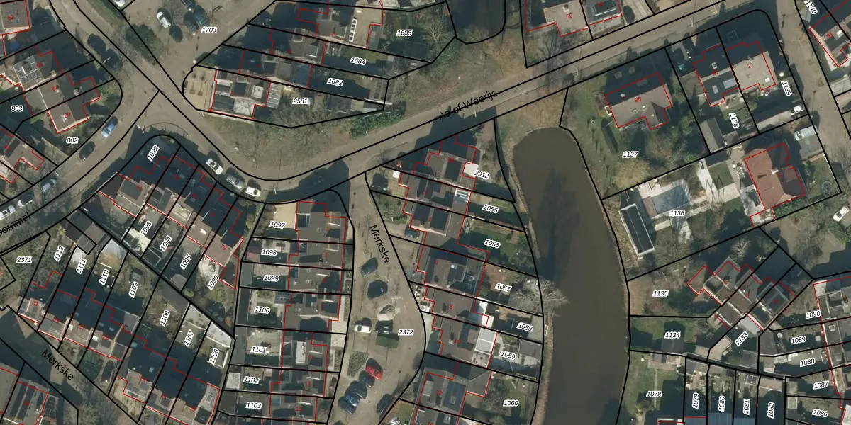 Het perceel waarop Merkske 4 staat heeft een oppervlakte van 343 m². Dit is een groot perceel. De perceeloppervlakte wordt geregistreerd door het Kadaster. Gedetailleerde informatie over de maten van dit perceel kunt u vinden in het rapport Kadastrale kaart met maatvoering van Merkske 4.