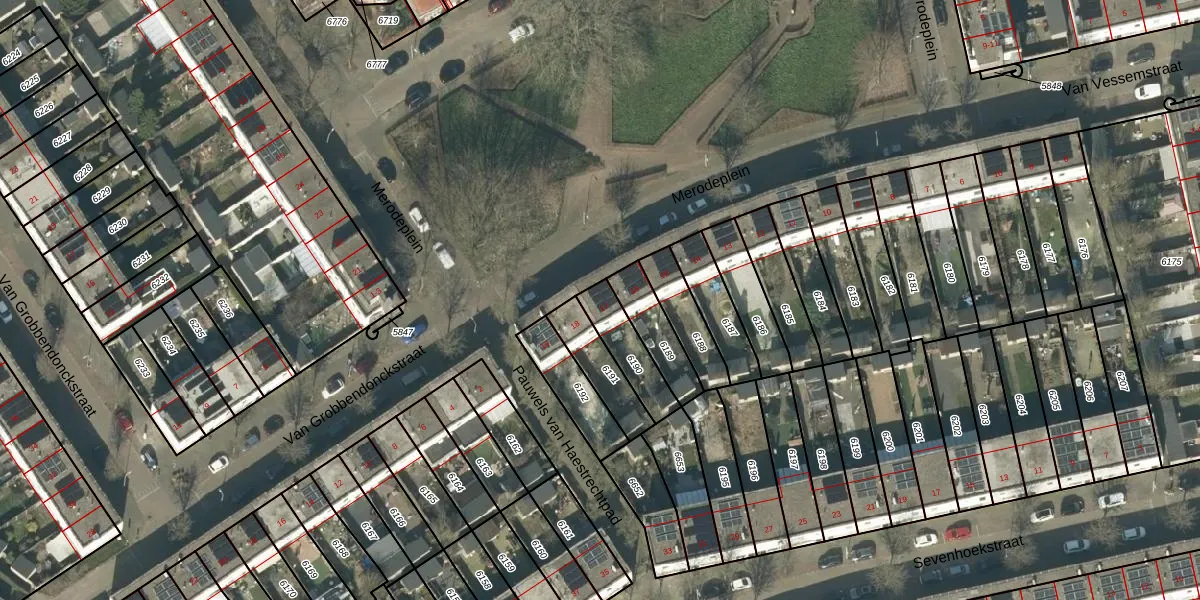 Het perceel waarop Merodeplein 17 staat heeft een oppervlakte van 138 m². Dit is een middelgroot perceel. De perceeloppervlakte wordt geregistreerd door het Kadaster. Gedetailleerde informatie over de maten van dit perceel kunt u vinden in het rapport Kadastrale kaart met maatvoering van Merodeplein 17.