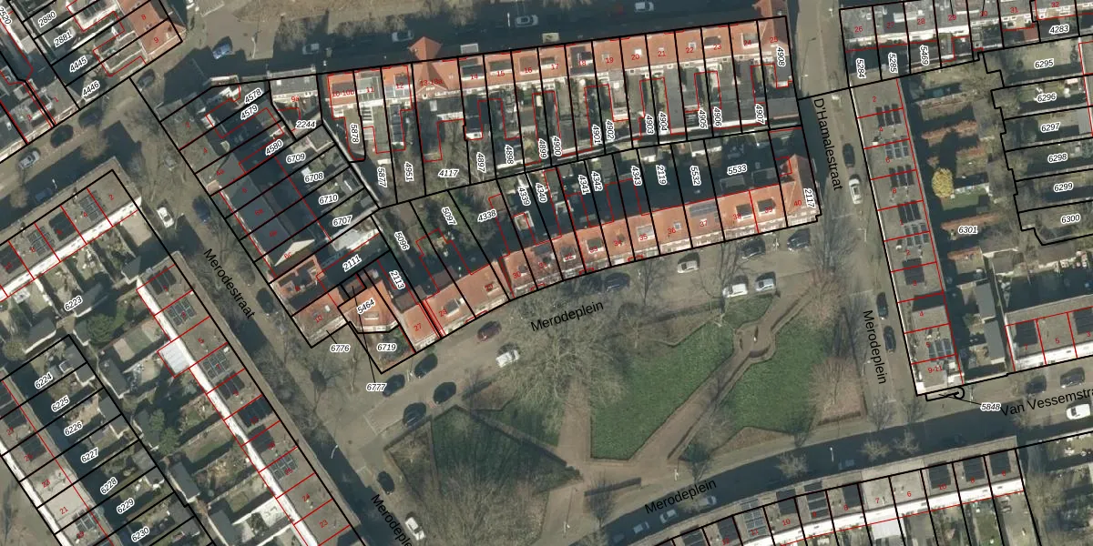 Het perceel waarop Merodeplein 31 staat heeft een oppervlakte van 114 m². Dit is een middelgroot perceel. De perceeloppervlakte wordt geregistreerd door het Kadaster. Gedetailleerde informatie over de maten van dit perceel kunt u vinden in het rapport Kadastrale kaart met maatvoering van Merodeplein 31.