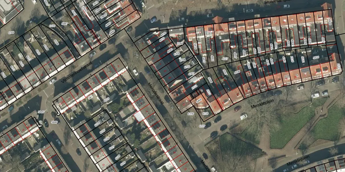 Merodestraat 6-c is gelegen op kadastraal perceel TBG01R6707. Deze kadastrale aanduiding is uniek en wordt gebruikt door het Kadaster om eigendomsrechten en andere zakelijke rechten vast te leggen. Het perceel maakt onderdeel uit van de kadastrale gemeente Tilburg.