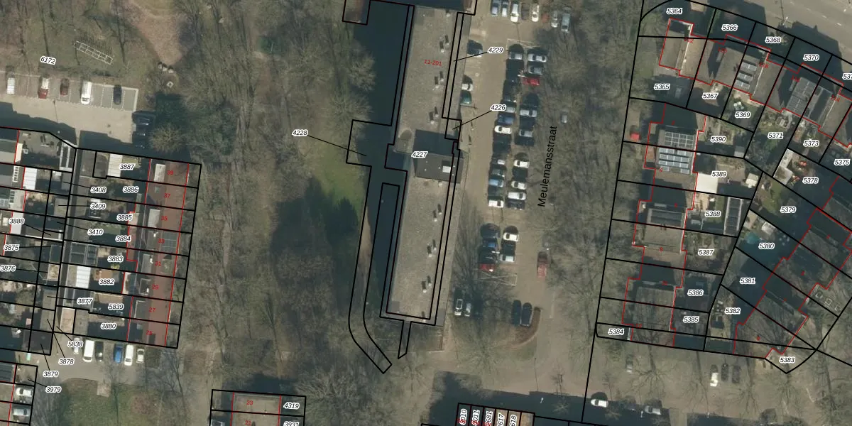 Meulemansstraat 101 is gelegen op kadastraal perceel TBG01S4227. Deze kadastrale aanduiding is uniek en wordt gebruikt door het Kadaster om eigendomsrechten en andere zakelijke rechten vast te leggen. Het perceel maakt onderdeel uit van de kadastrale gemeente Tilburg.