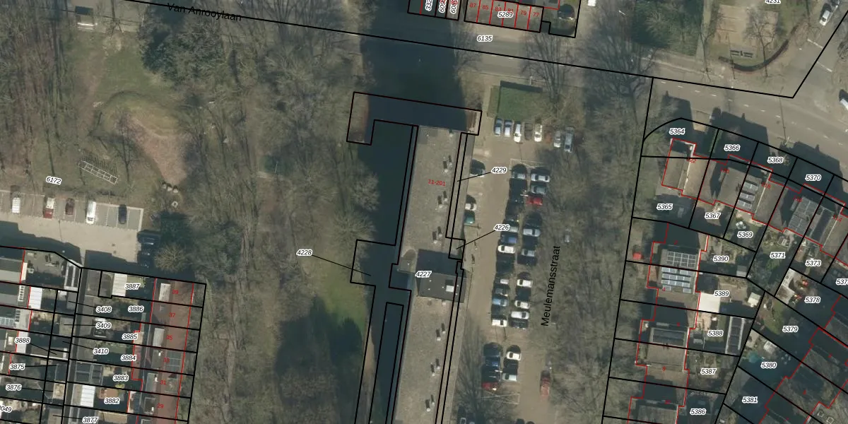Meulemansstraat 127 is gelegen op kadastraal perceel TBG01S4227. Deze kadastrale aanduiding is uniek en wordt gebruikt door het Kadaster om eigendomsrechten en andere zakelijke rechten vast te leggen. Het perceel maakt onderdeel uit van de kadastrale gemeente Tilburg.