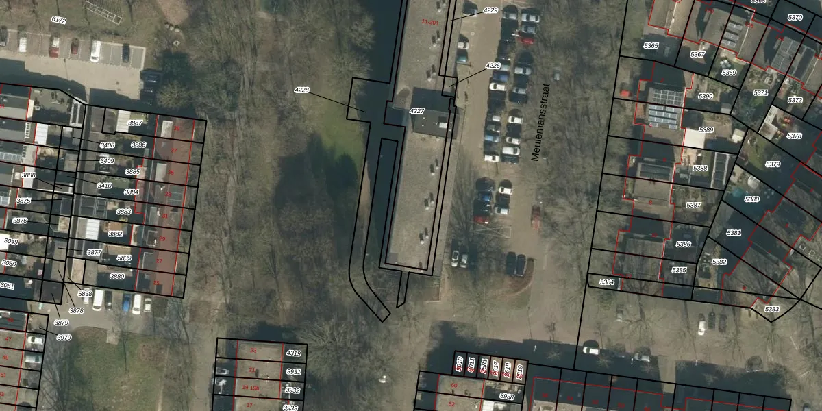 Meulemansstraat 135 is gelegen op kadastraal perceel TBG01S4227. Deze kadastrale aanduiding is uniek en wordt gebruikt door het Kadaster om eigendomsrechten en andere zakelijke rechten vast te leggen. Het perceel maakt onderdeel uit van de kadastrale gemeente Tilburg.