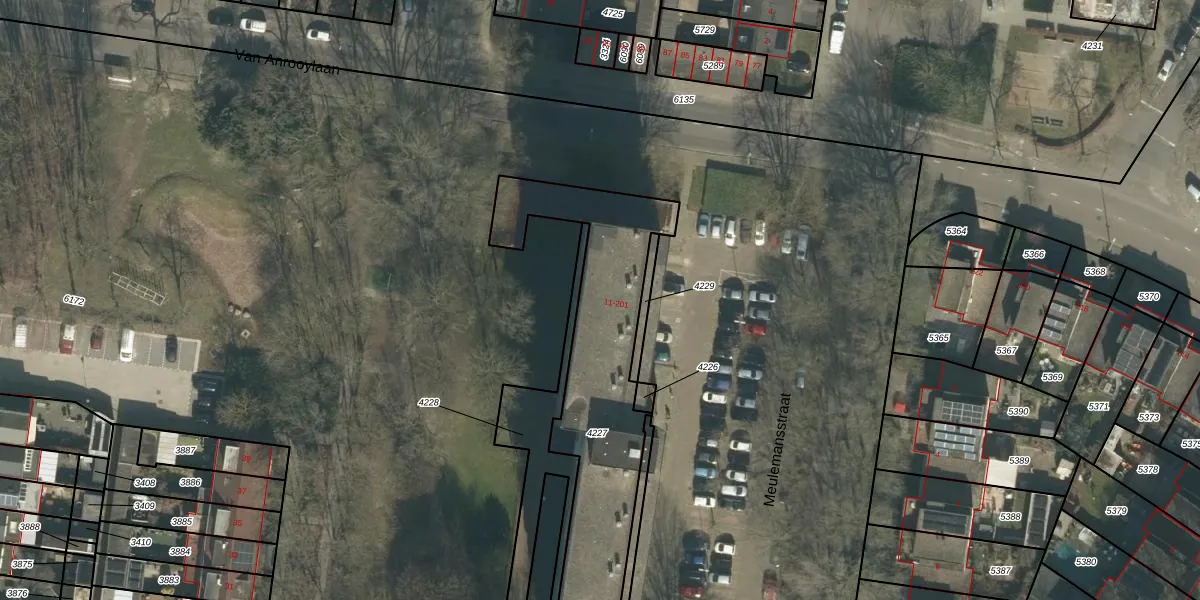Meulemansstraat 141 is gelegen op kadastraal perceel TBG01S4227. Deze kadastrale aanduiding is uniek en wordt gebruikt door het Kadaster om eigendomsrechten en andere zakelijke rechten vast te leggen. Het perceel maakt onderdeel uit van de kadastrale gemeente Tilburg.