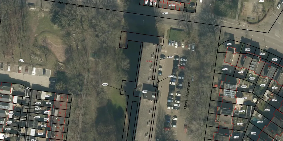 Meulemansstraat 175 is gelegen op kadastraal perceel TBG01S4227. Deze kadastrale aanduiding is uniek en wordt gebruikt door het Kadaster om eigendomsrechten en andere zakelijke rechten vast te leggen. Het perceel maakt onderdeel uit van de kadastrale gemeente Tilburg.