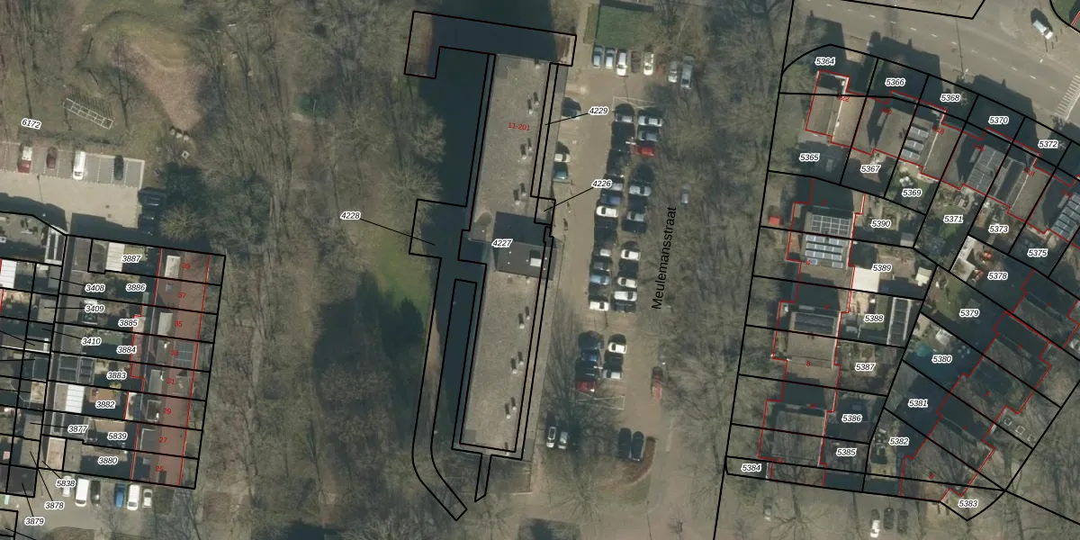 Meulemansstraat 19 is gelegen op kadastraal perceel TBG01S4227. Deze kadastrale aanduiding is uniek en wordt gebruikt door het Kadaster om eigendomsrechten en andere zakelijke rechten vast te leggen. Het perceel maakt onderdeel uit van de kadastrale gemeente Tilburg.
