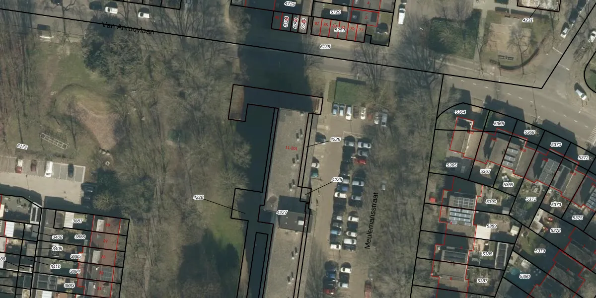 Meulemansstraat 45 is gelegen op kadastraal perceel TBG01S4227. Deze kadastrale aanduiding is uniek en wordt gebruikt door het Kadaster om eigendomsrechten en andere zakelijke rechten vast te leggen. Het perceel maakt onderdeel uit van de kadastrale gemeente Tilburg.