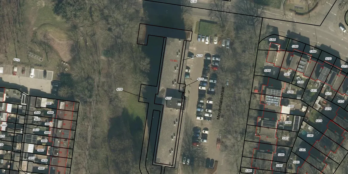 Meulemansstraat 49 is gelegen op kadastraal perceel TBG01S4227. Deze kadastrale aanduiding is uniek en wordt gebruikt door het Kadaster om eigendomsrechten en andere zakelijke rechten vast te leggen. Het perceel maakt onderdeel uit van de kadastrale gemeente Tilburg.