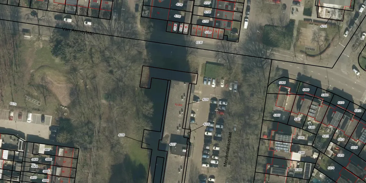 Meulemansstraat 59 is gelegen op kadastraal perceel TBG01S4227. Deze kadastrale aanduiding is uniek en wordt gebruikt door het Kadaster om eigendomsrechten en andere zakelijke rechten vast te leggen. Het perceel maakt onderdeel uit van de kadastrale gemeente Tilburg.