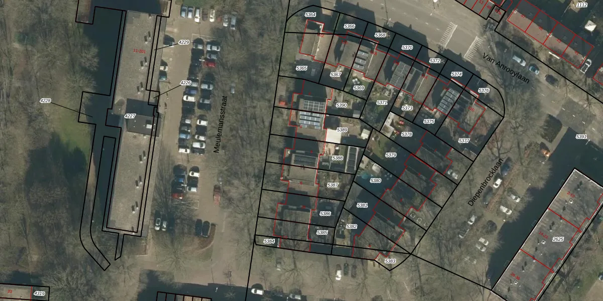Meulemansstraat 6 is gelegen op kadastraal perceel TBG01S5388. Deze kadastrale aanduiding is uniek en wordt gebruikt door het Kadaster om eigendomsrechten en andere zakelijke rechten vast te leggen. Het perceel maakt onderdeel uit van de kadastrale gemeente Tilburg.