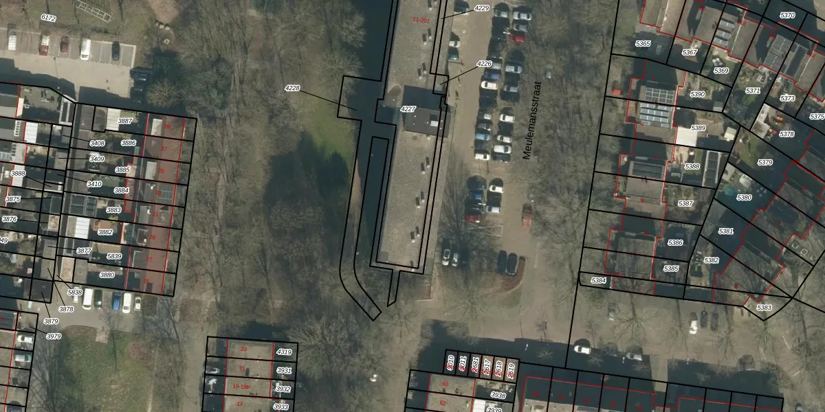 Meulemansstraat 87 is gelegen op kadastraal perceel TBG01S4227. Deze kadastrale aanduiding is uniek en wordt gebruikt door het Kadaster om eigendomsrechten en andere zakelijke rechten vast te leggen. Het perceel maakt onderdeel uit van de kadastrale gemeente Tilburg.