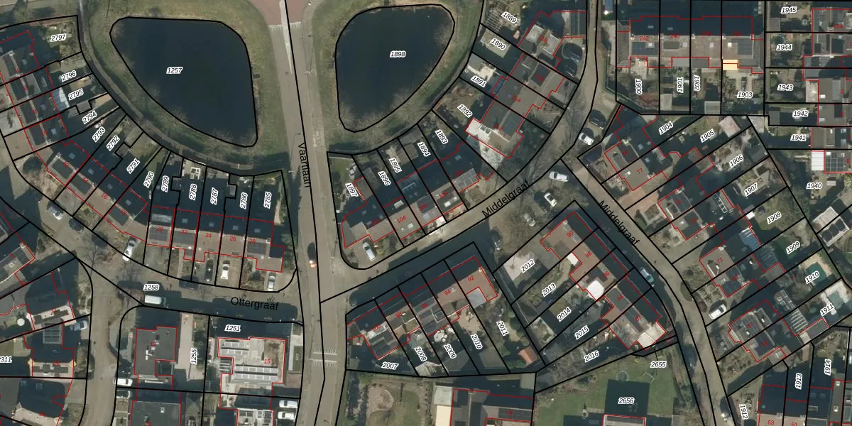 Het perceel waarop Middelgraaf 106 staat heeft een oppervlakte van 132 m². Dit is een middelgroot perceel. De perceeloppervlakte wordt geregistreerd door het Kadaster. Gedetailleerde informatie over de maten van dit perceel kunt u vinden in het rapport Kadastrale kaart met maatvoering van Middelgraaf 106.