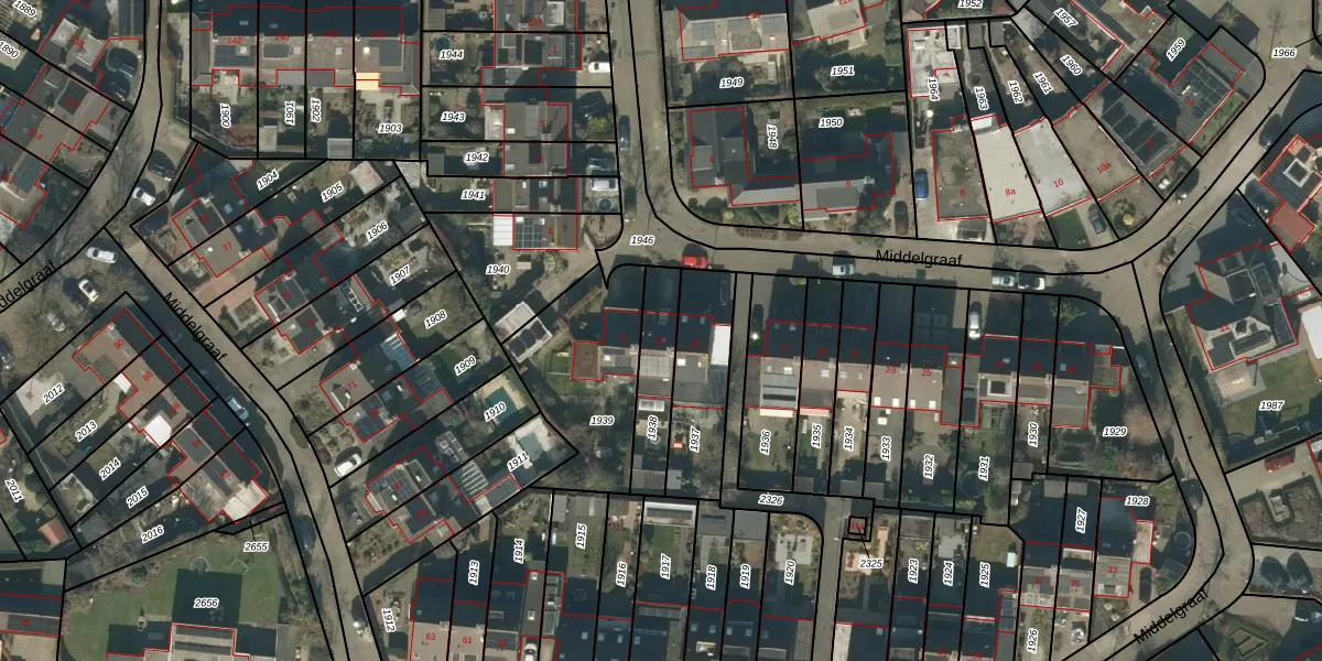 Middelgraaf 13 is gelegen op kadastraal perceel TBG01AA1938. Deze kadastrale aanduiding is uniek en wordt gebruikt door het Kadaster om eigendomsrechten en andere zakelijke rechten vast te leggen. Het perceel maakt onderdeel uit van de kadastrale gemeente Tilburg.