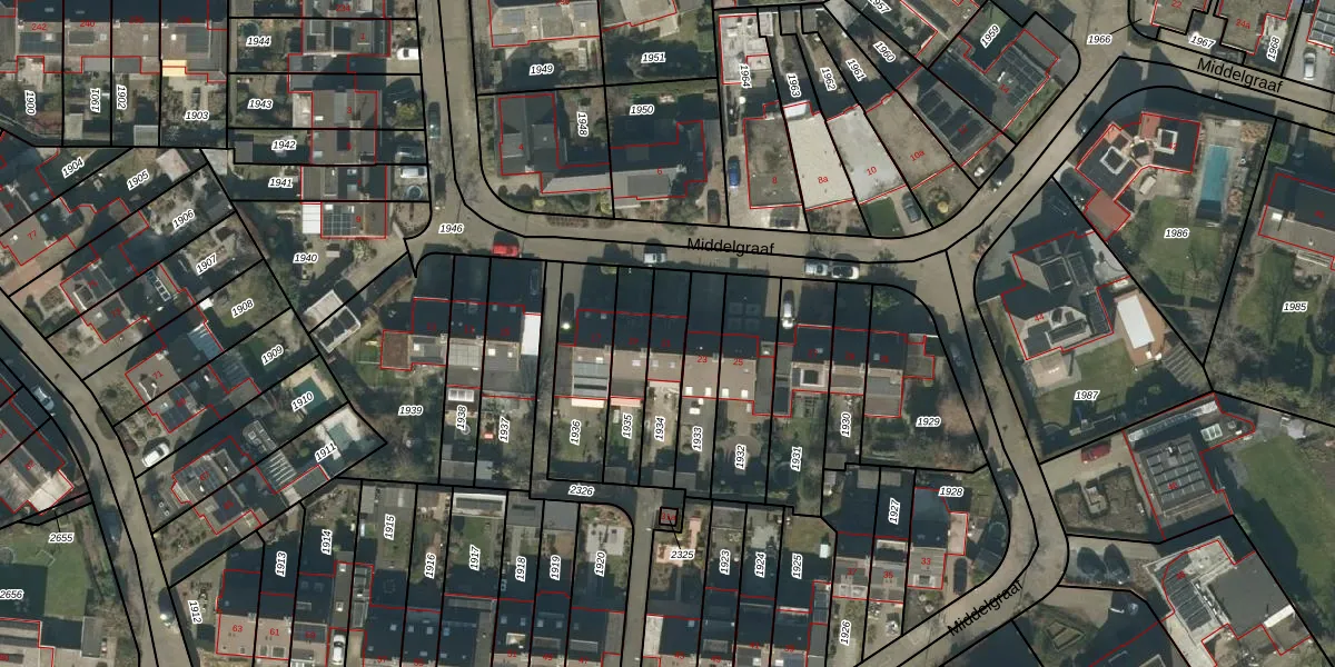 Middelgraaf 21 is gelegen op kadastraal perceel TBG01AA1934. Deze kadastrale aanduiding is uniek en wordt gebruikt door het Kadaster om eigendomsrechten en andere zakelijke rechten vast te leggen. Het perceel maakt onderdeel uit van de kadastrale gemeente Tilburg.
