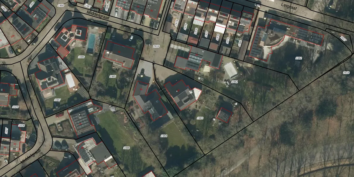 Het perceel waarop Middelgraaf 36 staat heeft een oppervlakte van 1316 m². Dit is een zeer groot perceel. De perceeloppervlakte wordt geregistreerd door het Kadaster. Gedetailleerde informatie over de maten van dit perceel kunt u vinden in het rapport Kadastrale kaart met maatvoering van Middelgraaf 36.