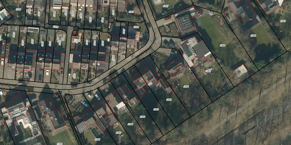 Het perceel waarop Middelgraaf 52 staat heeft een oppervlakte van 646 m². Dit is een groot perceel. De perceeloppervlakte wordt geregistreerd door het Kadaster. Gedetailleerde informatie over de maten van dit perceel kunt u vinden in het rapport Kadastrale kaart met maatvoering van Middelgraaf 52.