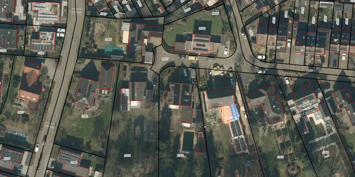 Middelgraaf 72 is gelegen op kadastraal perceel TBG01AA2002. Deze kadastrale aanduiding is uniek en wordt gebruikt door het Kadaster om eigendomsrechten en andere zakelijke rechten vast te leggen. Het perceel maakt onderdeel uit van de kadastrale gemeente Tilburg.