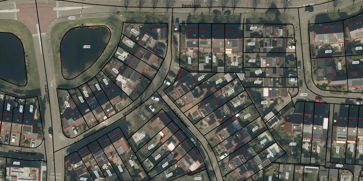 Het perceel waarop Middelgraaf 79 staat heeft een oppervlakte van 222 m². Dit is een middelgroot perceel. De perceeloppervlakte wordt geregistreerd door het Kadaster. Gedetailleerde informatie over de maten van dit perceel kunt u vinden in het rapport Kadastrale kaart met maatvoering van Middelgraaf 79.