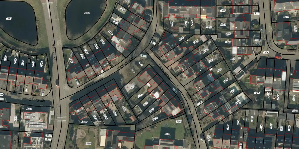 Het perceel waarop Middelgraaf 90 staat heeft een oppervlakte van 226 m². Dit is een middelgroot perceel. De perceeloppervlakte wordt geregistreerd door het Kadaster. Gedetailleerde informatie over de maten van dit perceel kunt u vinden in het rapport Kadastrale kaart met maatvoering van Middelgraaf 90.