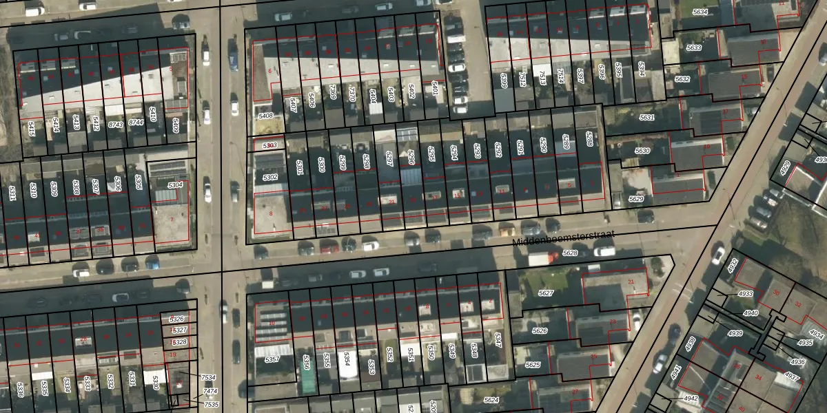 Middenbeemsterstraat 19 is gelegen op kadastraal perceel TBG01AG5296. Deze kadastrale aanduiding is uniek en wordt gebruikt door het Kadaster om eigendomsrechten en andere zakelijke rechten vast te leggen. Het perceel maakt onderdeel uit van de kadastrale gemeente Tilburg.