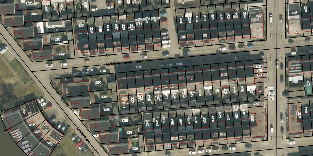 Middenbeemsterstraat 44 is gelegen op kadastraal perceel TBG01AG5341. Deze kadastrale aanduiding is uniek en wordt gebruikt door het Kadaster om eigendomsrechten en andere zakelijke rechten vast te leggen. Het perceel maakt onderdeel uit van de kadastrale gemeente Tilburg.