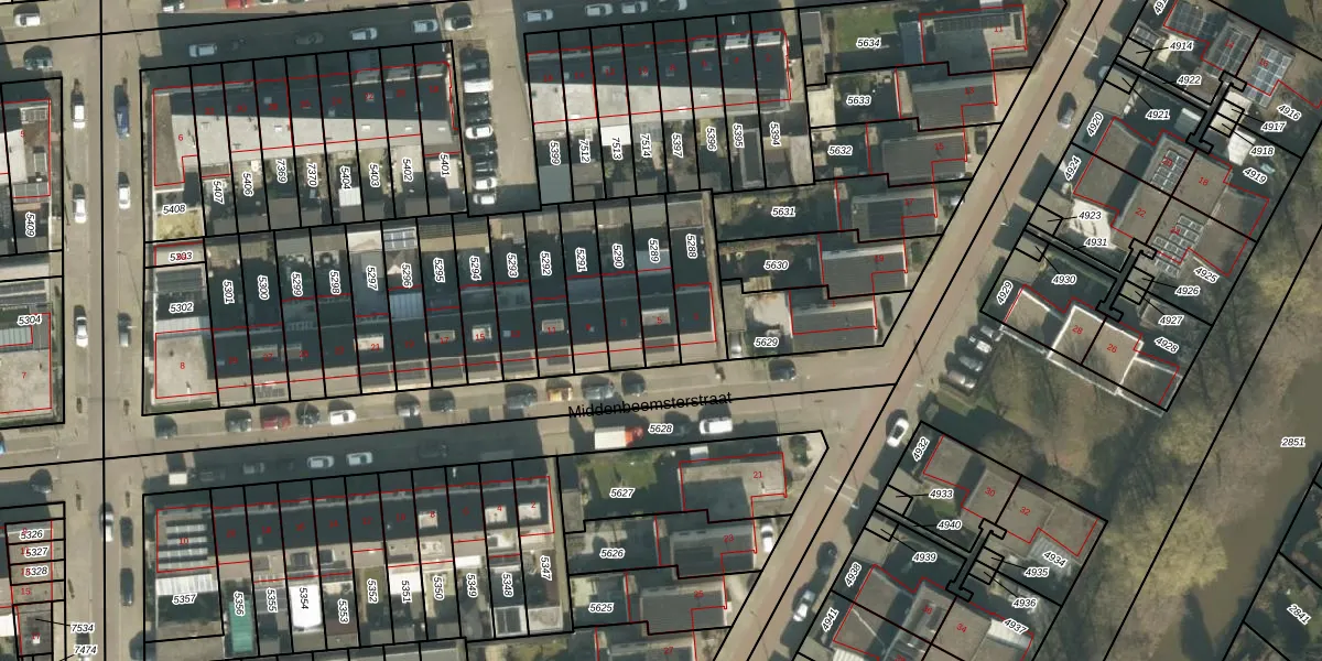 Middenbeemsterstraat 5 is gelegen op kadastraal perceel TBG01AG5289. Deze kadastrale aanduiding is uniek en wordt gebruikt door het Kadaster om eigendomsrechten en andere zakelijke rechten vast te leggen. Het perceel maakt onderdeel uit van de kadastrale gemeente Tilburg.