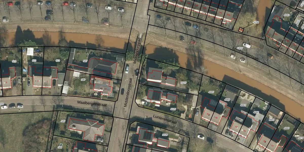 Middendorpstraat 2 is gelegen op kadastraal perceel TBG01AF5025. Deze kadastrale aanduiding is uniek en wordt gebruikt door het Kadaster om eigendomsrechten en andere zakelijke rechten vast te leggen. Het perceel maakt onderdeel uit van de kadastrale gemeente Tilburg.