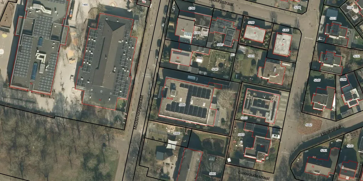 Het perceel waarop Middendorpstraat 48 staat heeft een oppervlakte van 1385 m². Dit is een zeer groot perceel. De perceeloppervlakte wordt geregistreerd door het Kadaster. Gedetailleerde informatie over de maten van dit perceel kunt u vinden in het rapport Kadastrale kaart met maatvoering van Middendorpstraat 48.