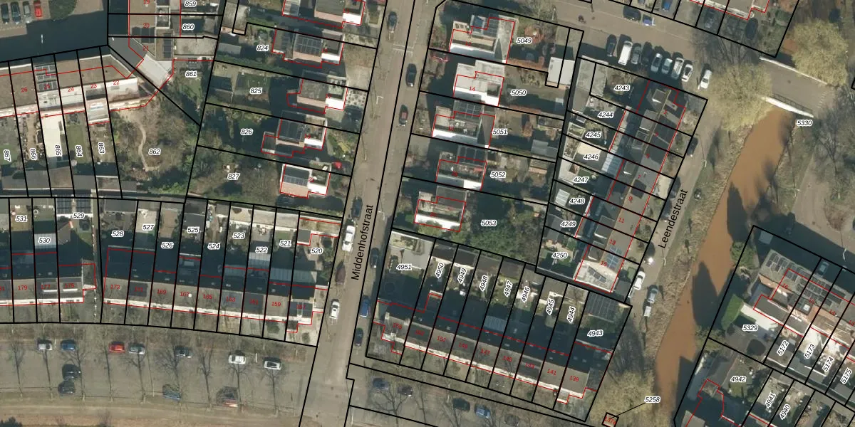 Middenhofstraat 20 is gelegen op kadastraal perceel TBG01AF5053. Deze kadastrale aanduiding is uniek en wordt gebruikt door het Kadaster om eigendomsrechten en andere zakelijke rechten vast te leggen. Het perceel maakt onderdeel uit van de kadastrale gemeente Tilburg.