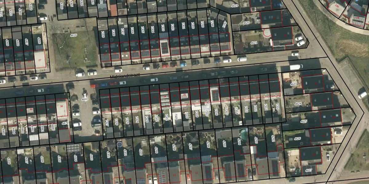 Midslandstraat 20 is gelegen op kadastraal perceel TBG01AG7319. Deze kadastrale aanduiding is uniek en wordt gebruikt door het Kadaster om eigendomsrechten en andere zakelijke rechten vast te leggen. Het perceel maakt onderdeel uit van de kadastrale gemeente Tilburg.