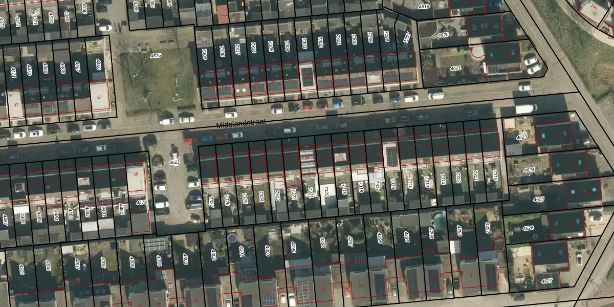 Midslandstraat 24 is gelegen op kadastraal perceel TBG01AG7321. Deze kadastrale aanduiding is uniek en wordt gebruikt door het Kadaster om eigendomsrechten en andere zakelijke rechten vast te leggen. Het perceel maakt onderdeel uit van de kadastrale gemeente Tilburg.