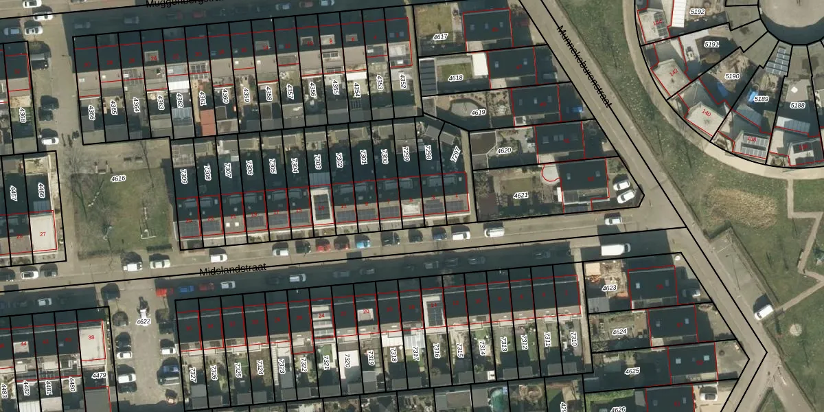 Midslandstraat 5 is gelegen op kadastraal perceel TBG01AG7299. Deze kadastrale aanduiding is uniek en wordt gebruikt door het Kadaster om eigendomsrechten en andere zakelijke rechten vast te leggen. Het perceel maakt onderdeel uit van de kadastrale gemeente Tilburg.