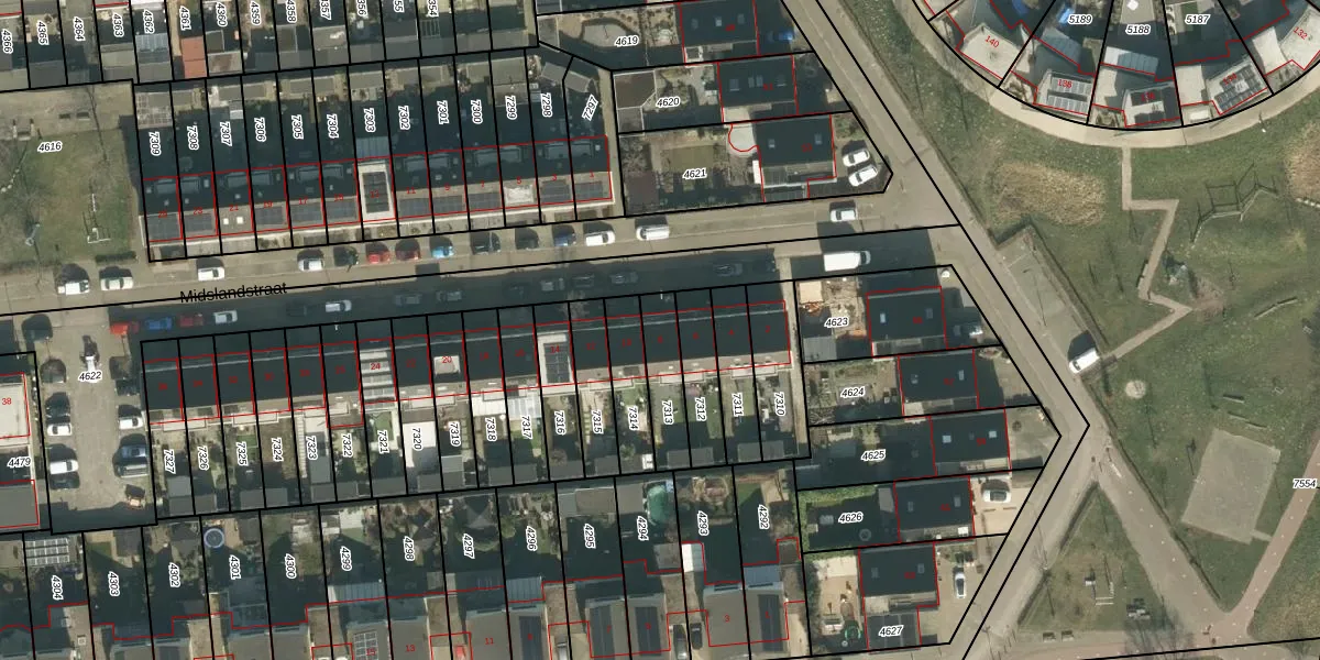 Midslandstraat 8 is gelegen op kadastraal perceel TBG01AG7313. Deze kadastrale aanduiding is uniek en wordt gebruikt door het Kadaster om eigendomsrechten en andere zakelijke rechten vast te leggen. Het perceel maakt onderdeel uit van de kadastrale gemeente Tilburg.