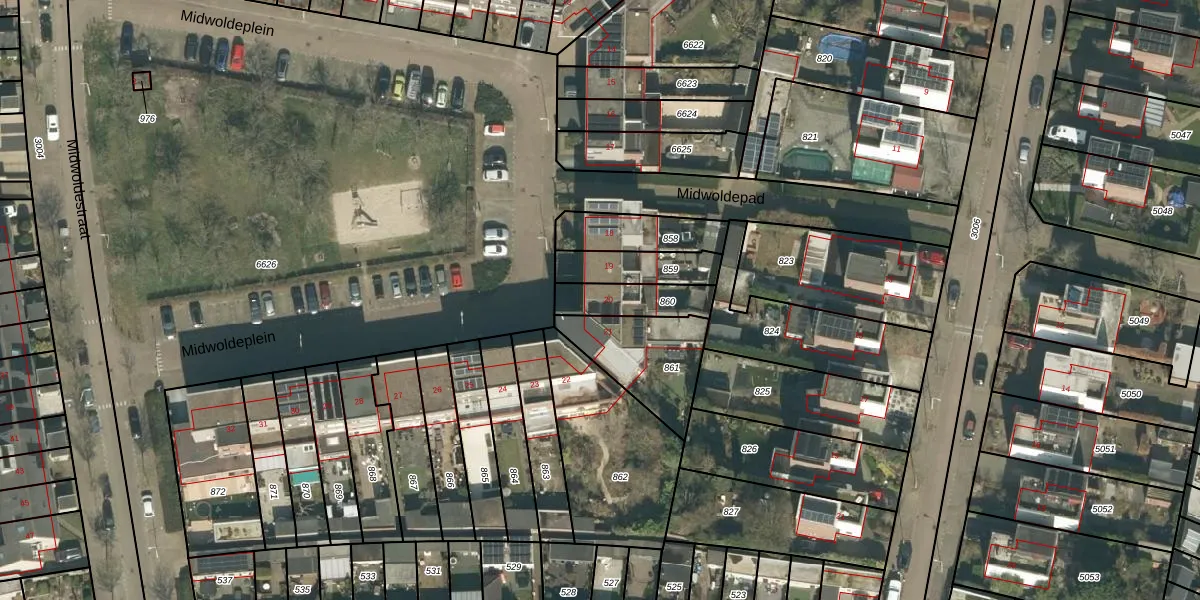 Het perceel waarop Midwoldeplein 20 staat heeft een oppervlakte van 142 m². Dit is een middelgroot perceel. De perceeloppervlakte wordt geregistreerd door het Kadaster. Gedetailleerde informatie over de maten van dit perceel kunt u vinden in het rapport Kadastrale kaart met maatvoering van Midwoldeplein 20.