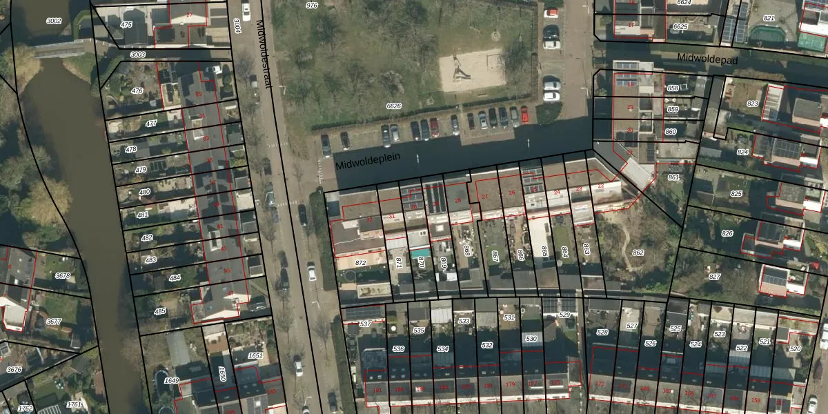 Midwoldeplein 30 is gelegen op kadastraal perceel TBG01AG870. Deze kadastrale aanduiding is uniek en wordt gebruikt door het Kadaster om eigendomsrechten en andere zakelijke rechten vast te leggen. Het perceel maakt onderdeel uit van de kadastrale gemeente Tilburg.