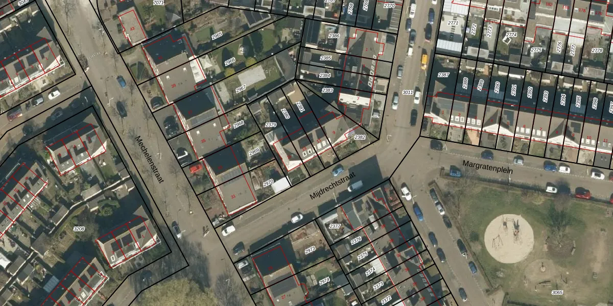 Mijdrechtstraat 13 is gelegen op kadastraal perceel TBG01AG2380. Deze kadastrale aanduiding is uniek en wordt gebruikt door het Kadaster om eigendomsrechten en andere zakelijke rechten vast te leggen. Het perceel maakt onderdeel uit van de kadastrale gemeente Tilburg.