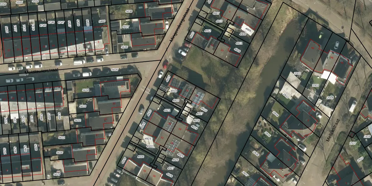 Mingersbergstraat 14 is gelegen op kadastraal perceel TBG01AG4915. Deze kadastrale aanduiding is uniek en wordt gebruikt door het Kadaster om eigendomsrechten en andere zakelijke rechten vast te leggen. Het perceel maakt onderdeel uit van de kadastrale gemeente Tilburg.