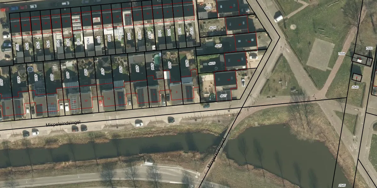 Het perceel waarop Mispeleindsingel 1 staat heeft een oppervlakte van 278 m². Dit is een middelgroot perceel. De perceeloppervlakte wordt geregistreerd door het Kadaster. Gedetailleerde informatie over de maten van dit perceel kunt u vinden in het rapport Kadastrale kaart met maatvoering van Mispeleindsingel 1.