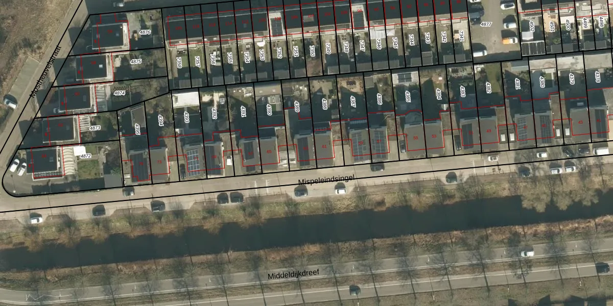 Mispeleindsingel 63 is gelegen op kadastraal perceel TBG01AG4389. Deze kadastrale aanduiding is uniek en wordt gebruikt door het Kadaster om eigendomsrechten en andere zakelijke rechten vast te leggen. Het perceel maakt onderdeel uit van de kadastrale gemeente Tilburg.