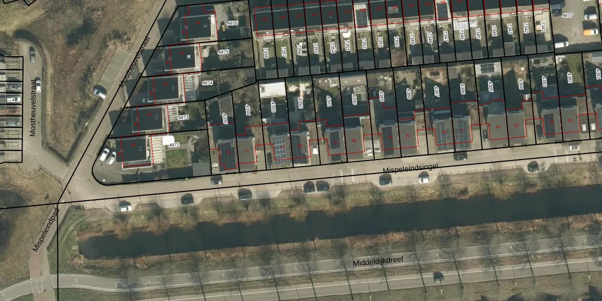 Mispeleindsingel 69 is gelegen op kadastraal perceel TBG01AG4392. Deze kadastrale aanduiding is uniek en wordt gebruikt door het Kadaster om eigendomsrechten en andere zakelijke rechten vast te leggen. Het perceel maakt onderdeel uit van de kadastrale gemeente Tilburg.