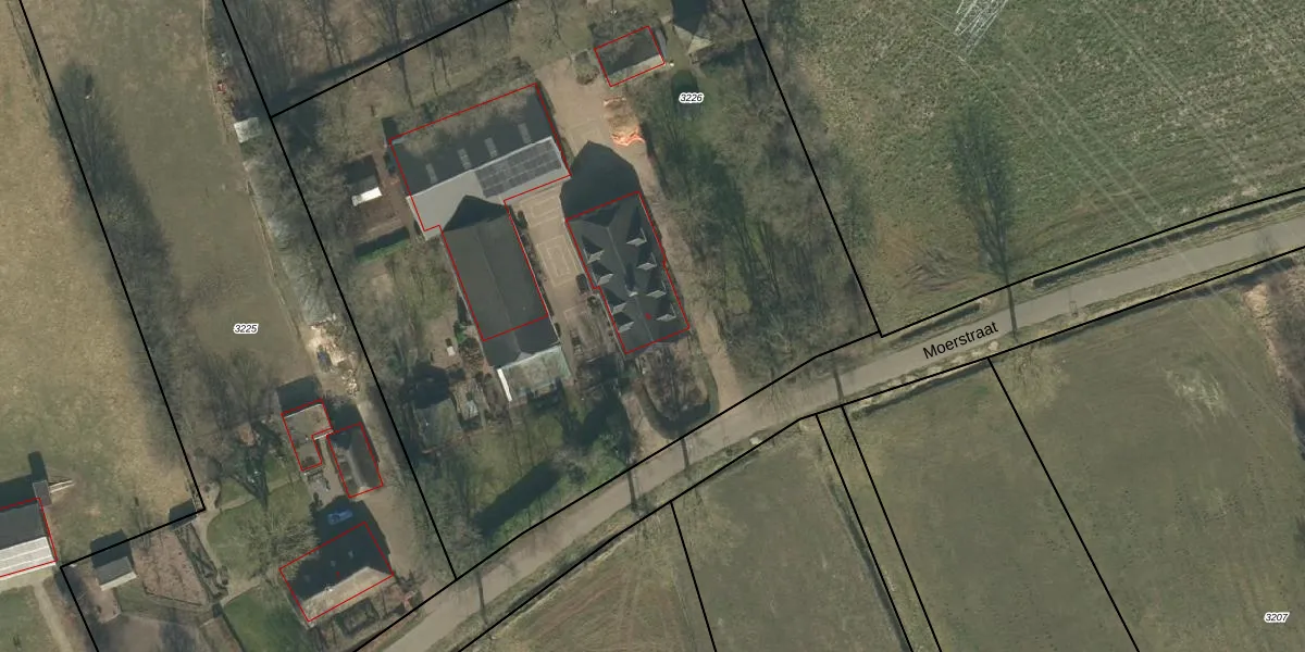 Het perceel waarop Moerstraat 5 staat heeft een oppervlakte van 5322 m². Dit is een zeer groot perceel. De perceeloppervlakte wordt geregistreerd door het Kadaster. Gedetailleerde informatie over de maten van dit perceel kunt u vinden in het rapport Kadastrale kaart met maatvoering van Moerstraat 5.