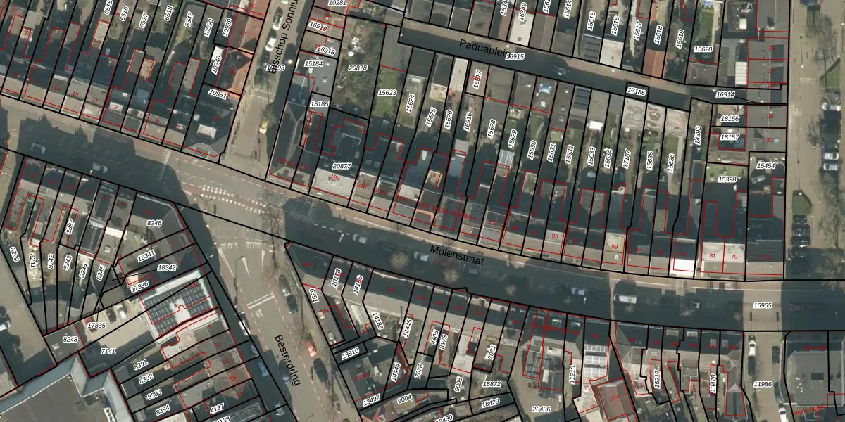 Molenstraat 101-c is gelegen op kadastraal perceel TBG01N15626. Deze kadastrale aanduiding is uniek en wordt gebruikt door het Kadaster om eigendomsrechten en andere zakelijke rechten vast te leggen. Het perceel maakt onderdeel uit van de kadastrale gemeente Tilburg.