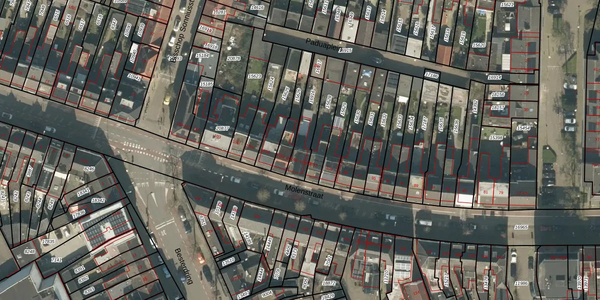 Molenstraat 101-03 is gelegen op kadastraal perceel TBG01N16916. Deze kadastrale aanduiding is uniek en wordt gebruikt door het Kadaster om eigendomsrechten en andere zakelijke rechten vast te leggen. Het perceel maakt onderdeel uit van de kadastrale gemeente Tilburg.