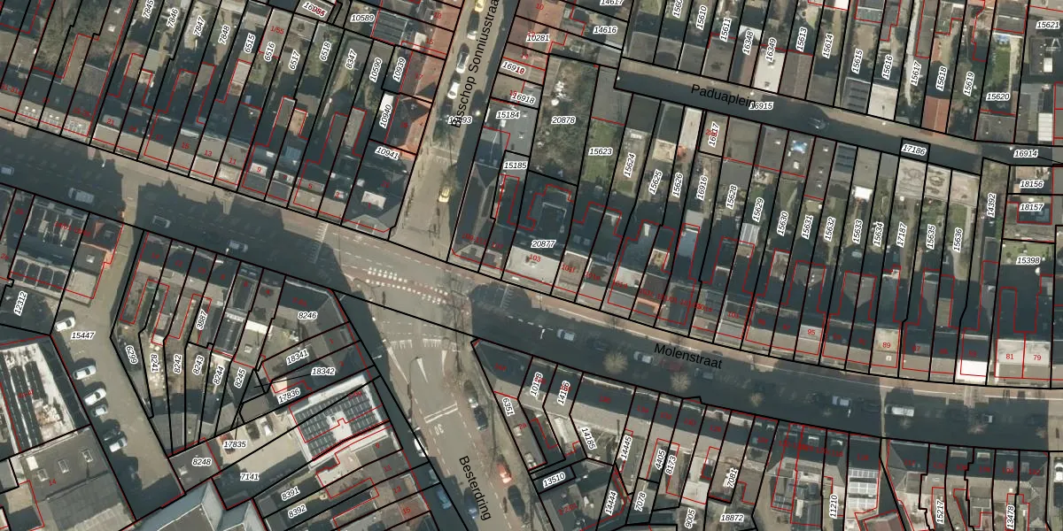 Molenstraat 103 is gelegen op kadastraal perceel TBG01N20877. Deze kadastrale aanduiding is uniek en wordt gebruikt door het Kadaster om eigendomsrechten en andere zakelijke rechten vast te leggen. Het perceel maakt onderdeel uit van de kadastrale gemeente Tilburg.