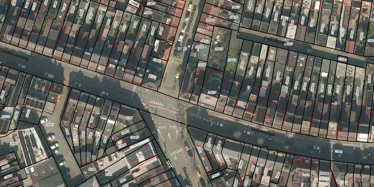 Molenstraat 111 is gelegen op kadastraal perceel TBG01N15184. Deze kadastrale aanduiding is uniek en wordt gebruikt door het Kadaster om eigendomsrechten en andere zakelijke rechten vast te leggen. Het perceel maakt onderdeel uit van de kadastrale gemeente Tilburg.