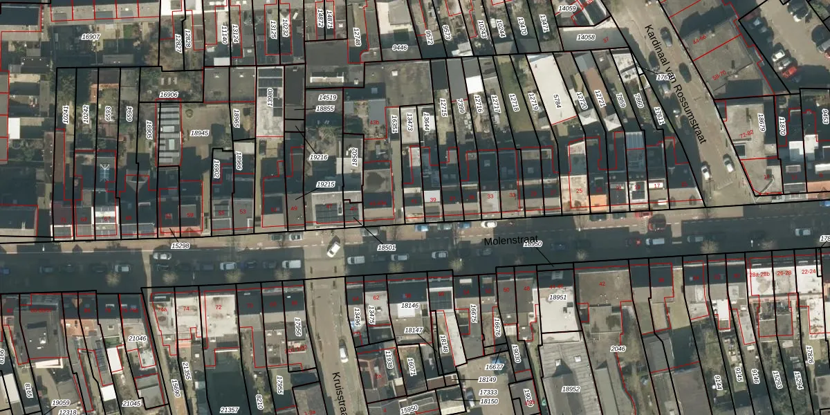 Molenstraat 41 is gelegen op kadastraal perceel TBG01N13473. Deze kadastrale aanduiding is uniek en wordt gebruikt door het Kadaster om eigendomsrechten en andere zakelijke rechten vast te leggen. Het perceel maakt onderdeel uit van de kadastrale gemeente Tilburg.