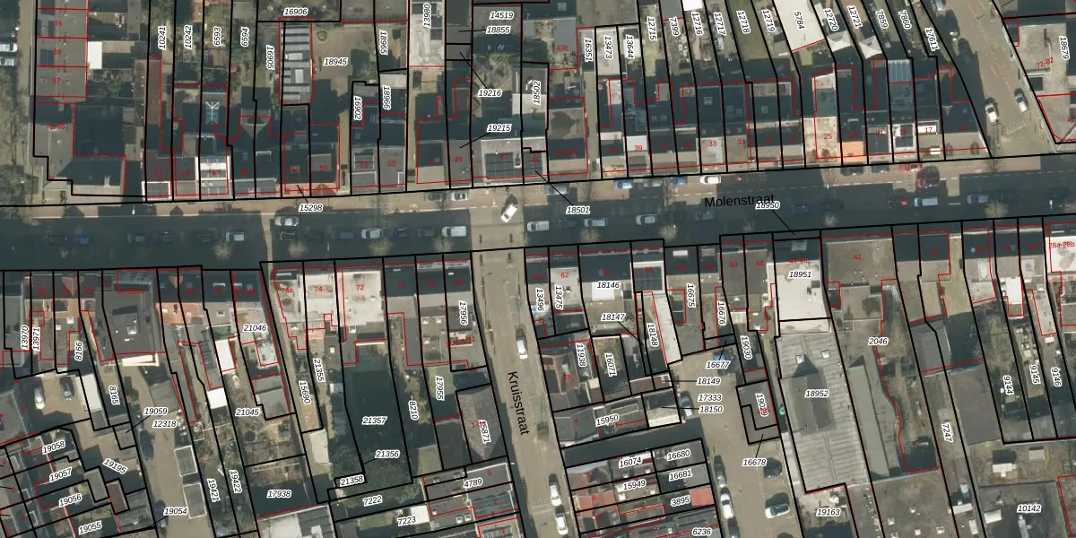 Het perceel waarop Molenstraat 64 staat heeft een oppervlakte van 72 m². Dit is een klein perceel. De perceeloppervlakte wordt geregistreerd door het Kadaster. Gedetailleerde informatie over de maten van dit perceel kunt u vinden in het rapport Kadastrale kaart met maatvoering van Molenstraat 64.
