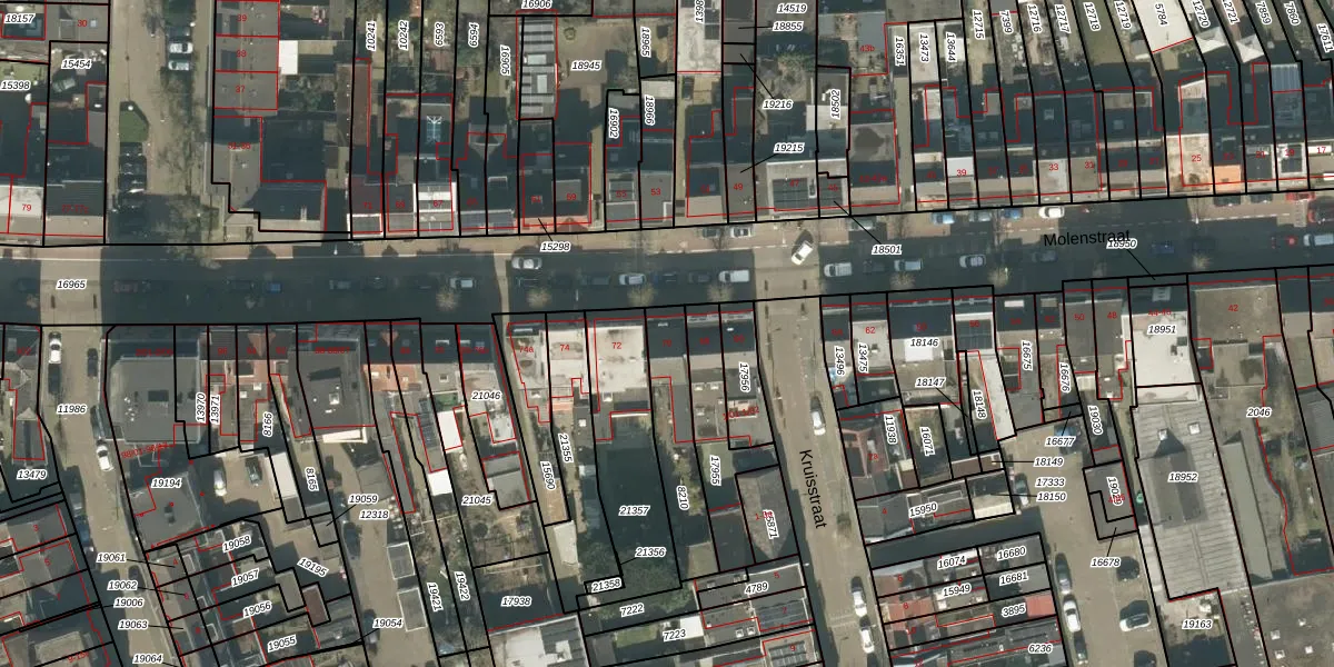 Molenstraat 70 is gelegen op kadastraal perceel TBG01N8210. Deze kadastrale aanduiding is uniek en wordt gebruikt door het Kadaster om eigendomsrechten en andere zakelijke rechten vast te leggen. Het perceel maakt onderdeel uit van de kadastrale gemeente Tilburg.